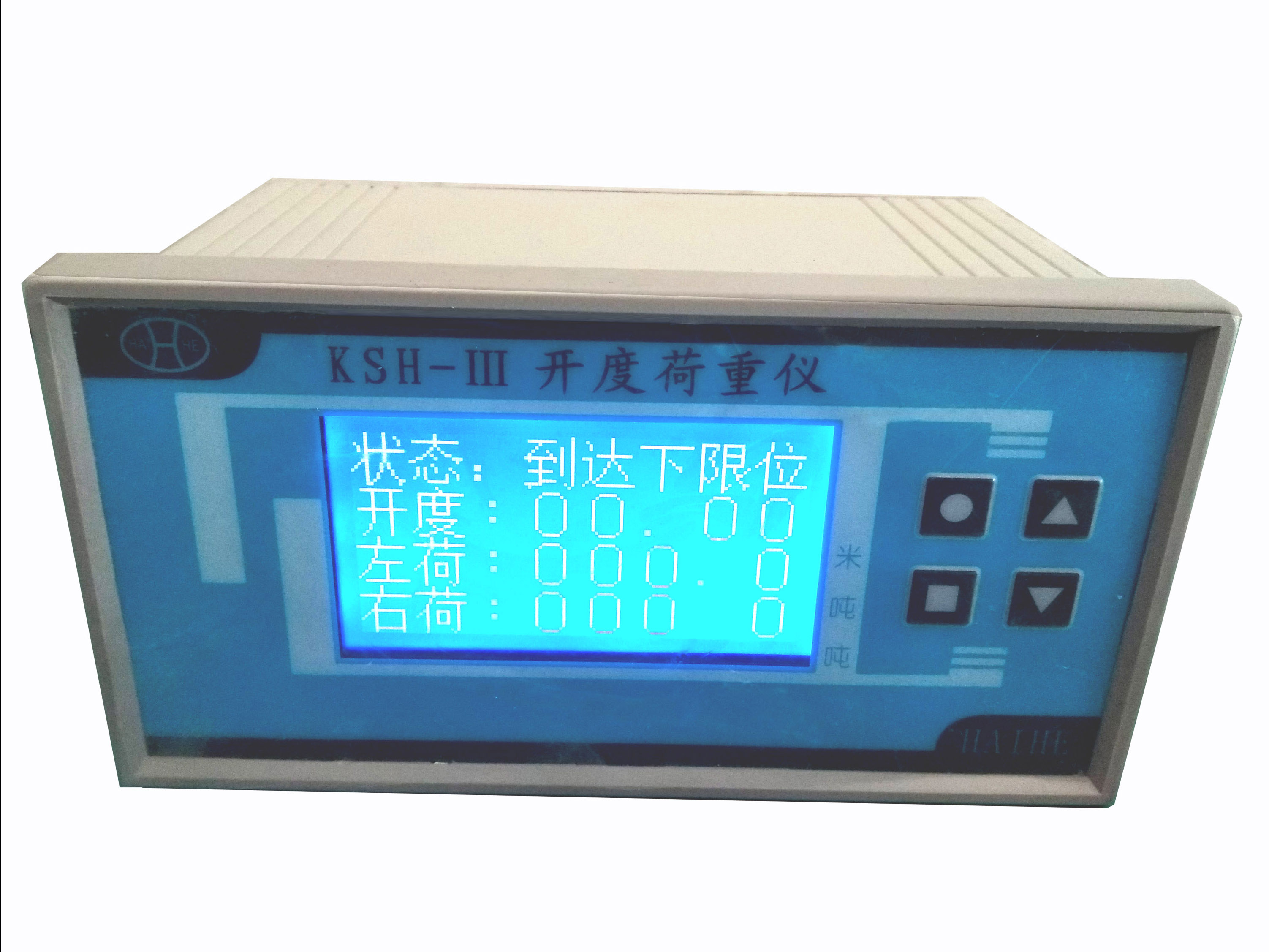 KSH-III開度雙荷重儀是針對水利,水電,水文行業(yè)的實際需要而研制的,它是相對獨立同時又有模擬量信號輸出以便組網(wǎng)的智能型閘門開度的測控裝置。該儀器采用嵌入式微電腦控制技術(shù),功能強大,性能穩(wěn)定可靠,精度高,抗干擾能力強。是各種閘門、橋機、門機、起重機等設(shè)備的開度荷重測控裝置。適用于傳感器和實際閘門開度為線性關(guān)系的場合,例如平板閘,也適用于非線性關(guān)系的場合,例如弧形閘以及多層鋼纜卷筒等。非線性測量采用分段逼近法,即將整個量程分成若干分段(本顯示器分10段),用戶只要在顯示器上根據(jù)實際測量設(shè)置好各段段末的開度值即可。對于線性測量只要預(yù)置一段段末的開度值即可。 儀表采用多功能16位CPU進行運算和控制,儀器硬件設(shè)有看門狗自復(fù)位電路,軟硬件采用多種抗干擾措施,能可靠的工作在各種工業(yè)環(huán)境中。儀表可設(shè)置各種參數(shù),具有flash存儲器,可存儲各種預(yù)置參數(shù),并能掉電保存。該儀表擁有RS485、繼電器多種輸出接口,便于組成網(wǎng)絡(luò)控制系統(tǒng)。 KSH儀表結(jié)構(gòu)簡單、外觀美觀、使用方便、可長期連續(xù)運行。